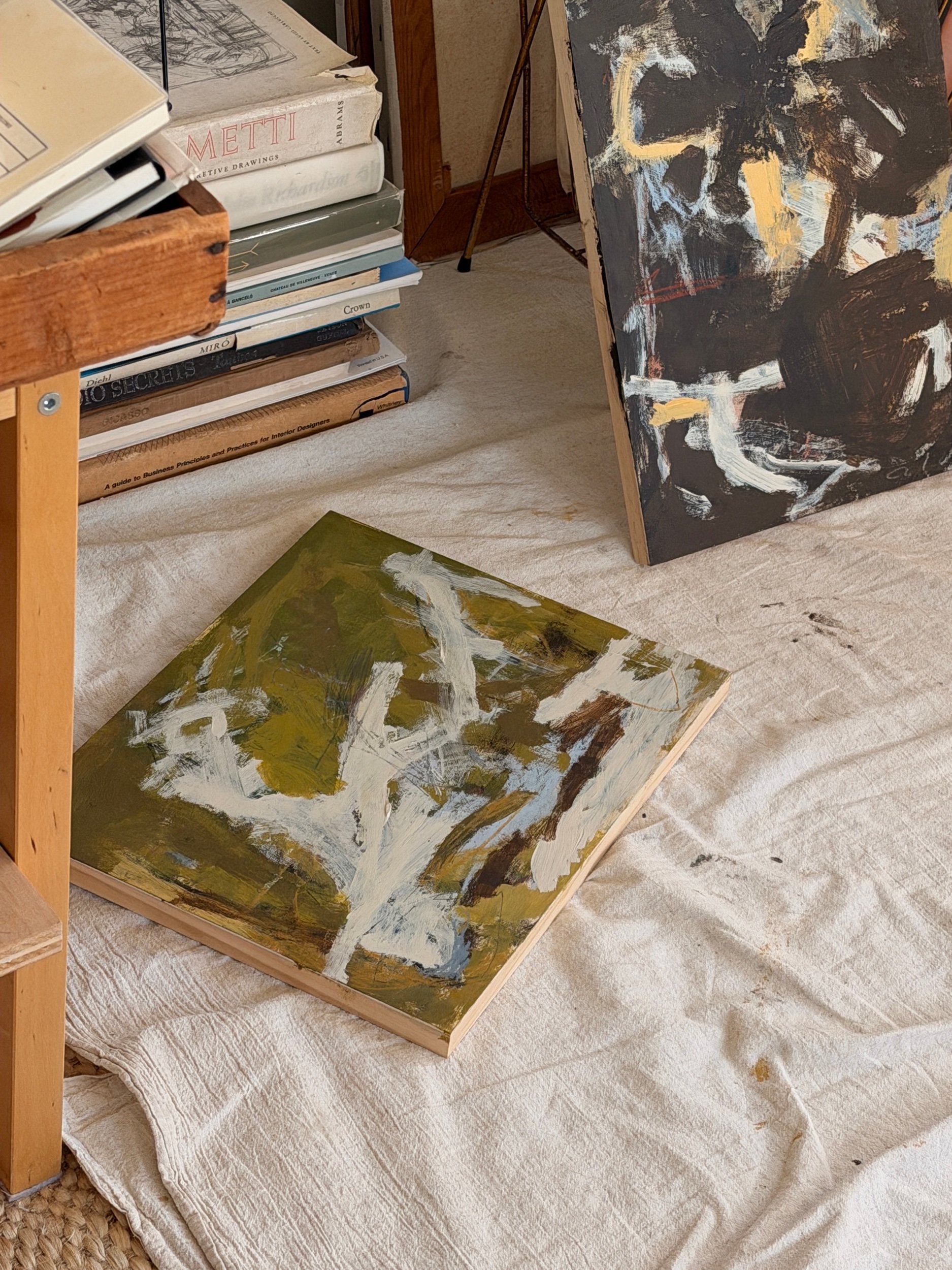 Art › ‘In The Olive Grove’ Original Painting Image 1 of 5 Image 2 of 5 Image 3 of 5 Image 4 of 5 Image 5 of 5 ‘In The Olive Grove’ Original Painting $200.00 11”x14” Acrylic, crayon, graphite on wood panel Add To Cart Added! 11”x14” Acrylic, crayon, graphite on wood panel