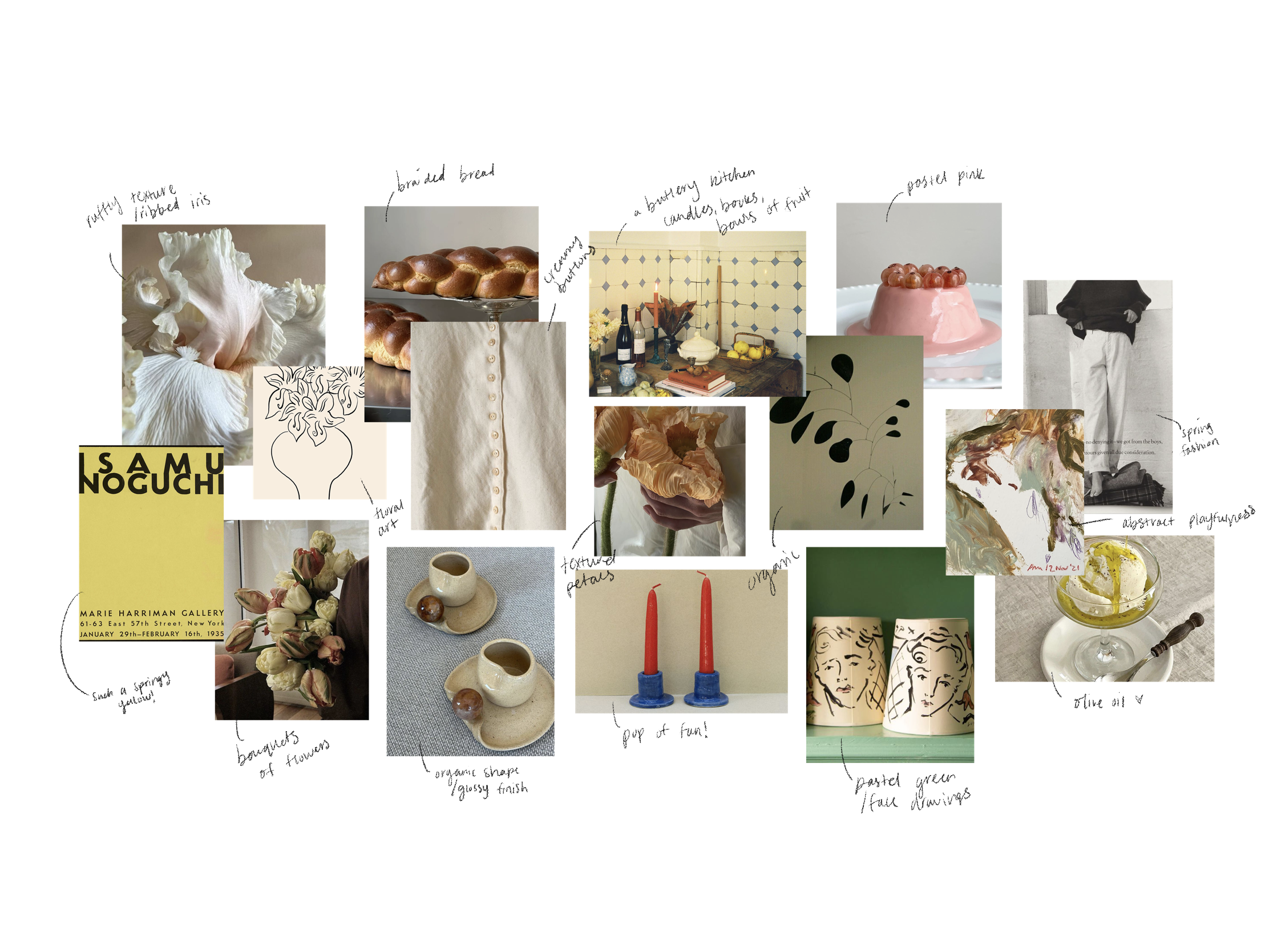 Spring! This months board is all about the start of a new season. Brighter days, flowers beginning to emerge out of the soil and pastel heaven. A happier palette coming out of a somber winter.